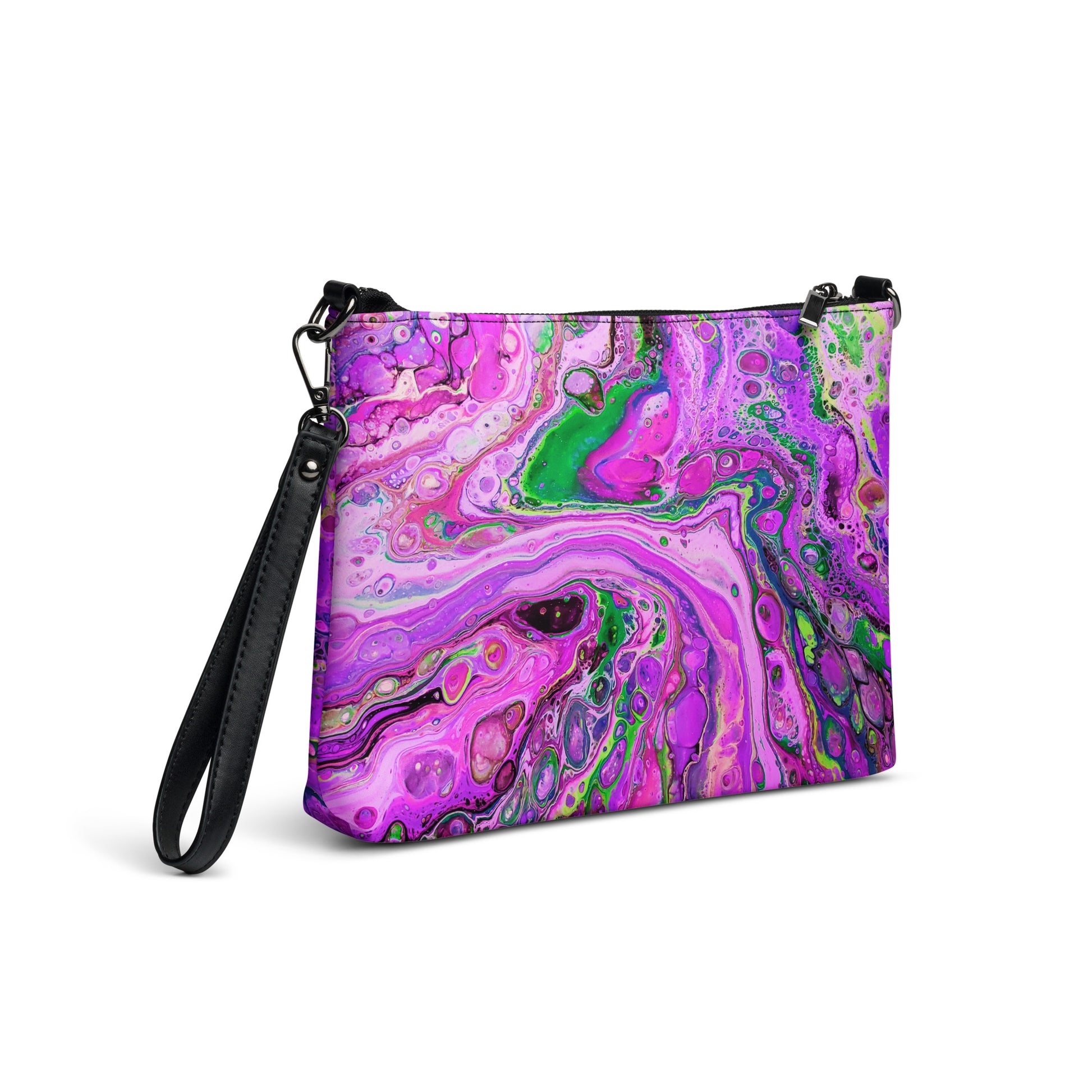 Keep your style on point and your hands free with our versatile crossbody bag. It’s made of premium faux leather and features dark gray hardware. Thanks to the zip-top closure and multiple inside pockets, you can keep your essentials secure and organized. Transform this crossbody bag with removable wrist and shoulder straps to style it for day-to-night looks.